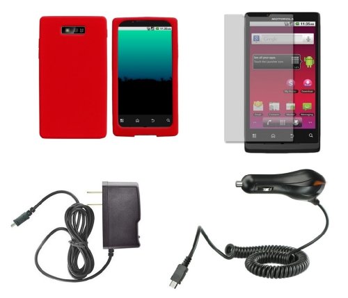 Motorola Triumph (Virgin Mobile) Premium Combo Pack - Red Silicone Soft Skin Case Cover + Atom LED Keychain Light + Screen Protector + Wall Charger + Car Charger Overview | Sale - Review & Buy at Cheap Price